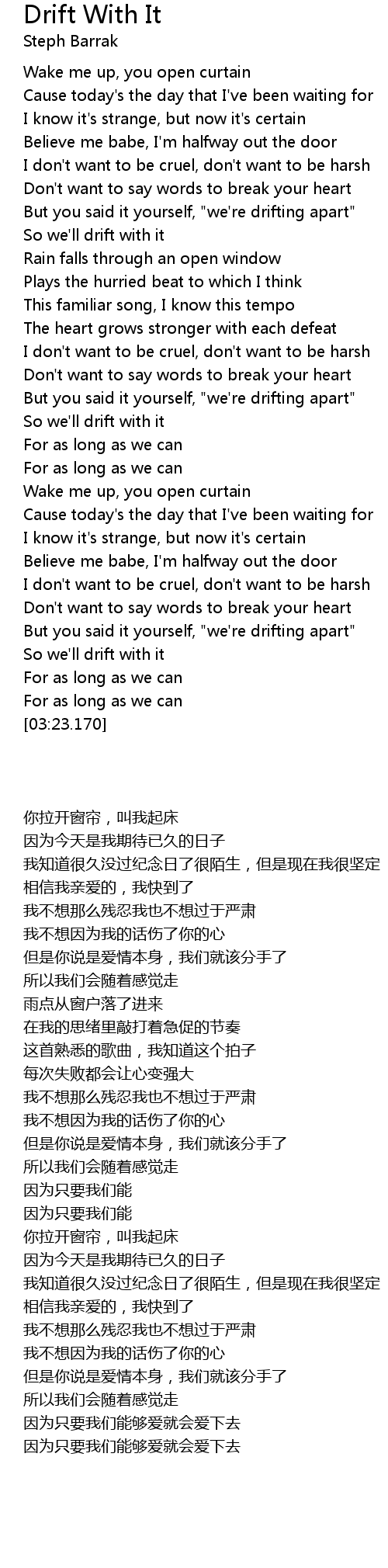 But you said it yourself, "we're drifting apart" |