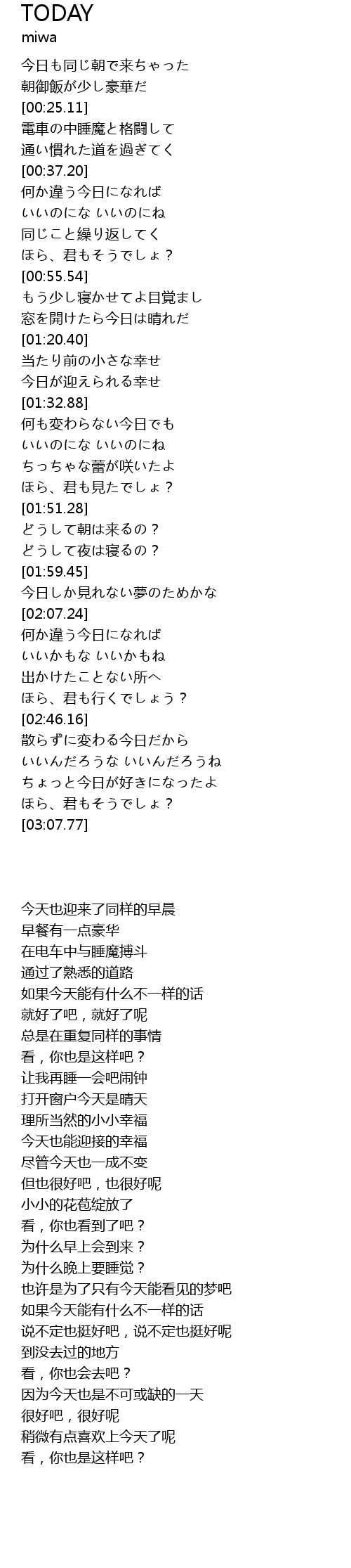 | [00:10.31] | 今日も同じ朝で来ちゃった |