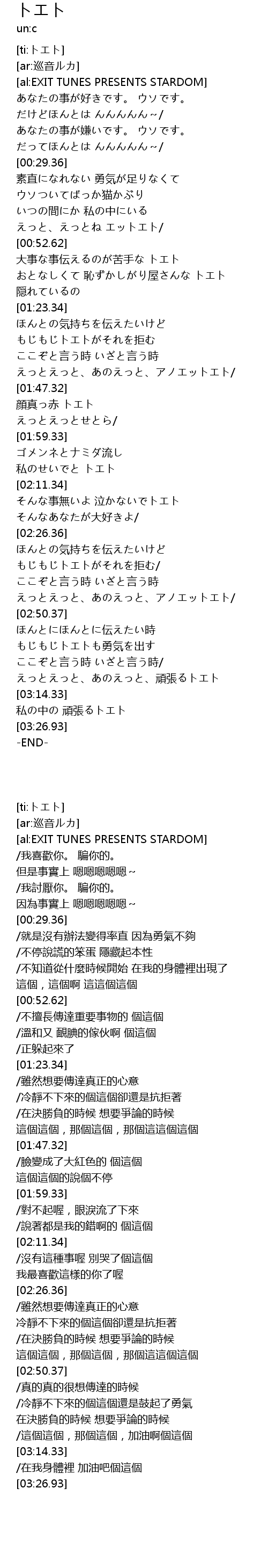 | [00:53.62] | 大事な事伝えるのが苦手な トエト |