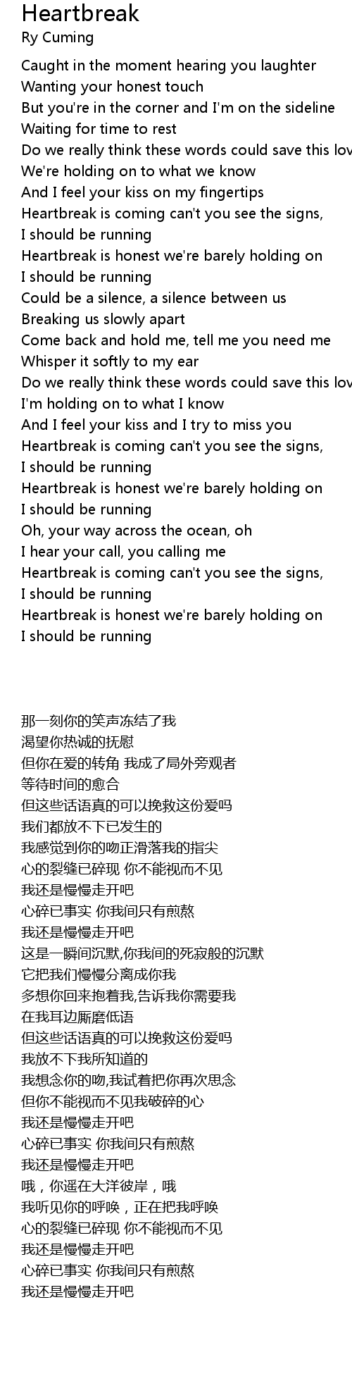 Heartbreak is honest we're barely holding on |
