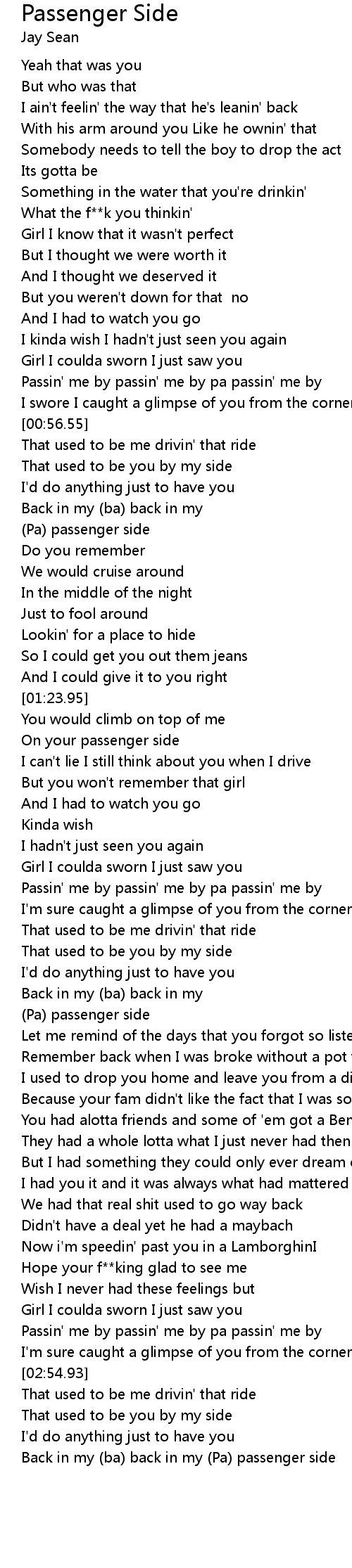 | [03:05.52] | Back in my (ba) back in my (Pa) passenger side |