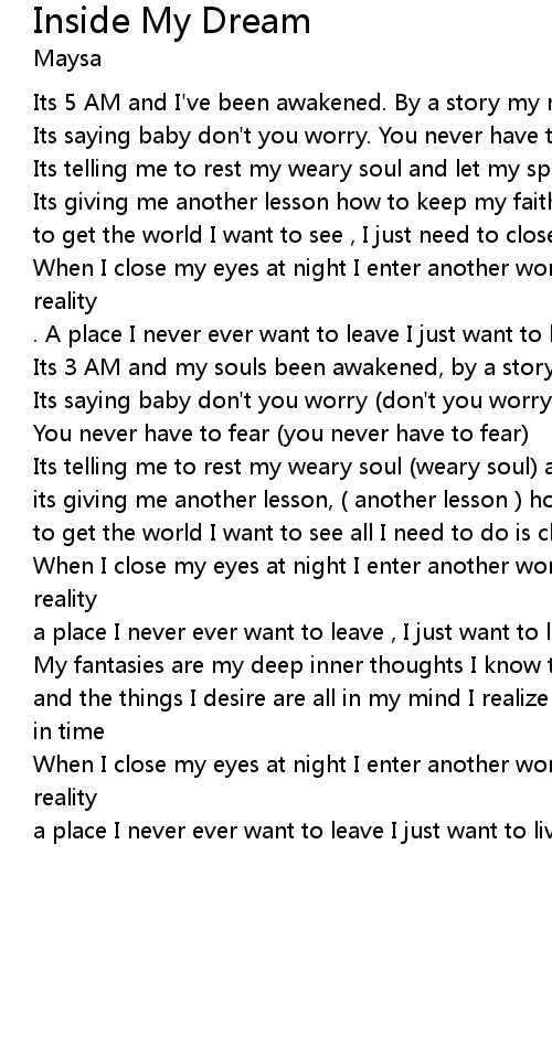 . A place I never ever want to leave I just want to live inside my dream |