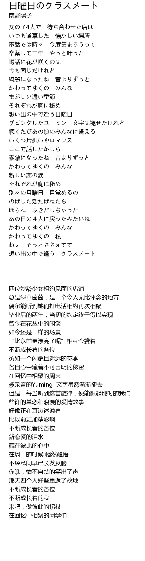 | [03:47.99] | 想い出の中で逢う クラスメート |