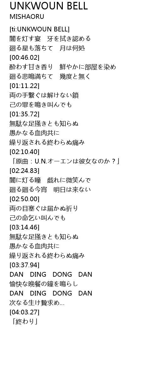 | [02:10.43] | 「原曲:U.N.オーエンは彼女なのか?」 |
