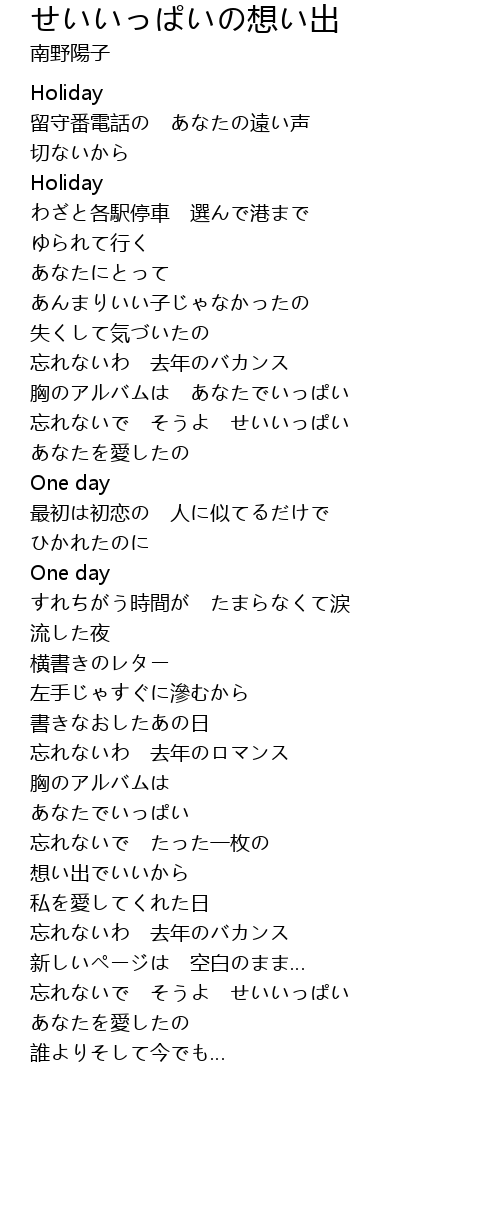 | [03:19.67] | 忘れないわ 去年のバカンス |