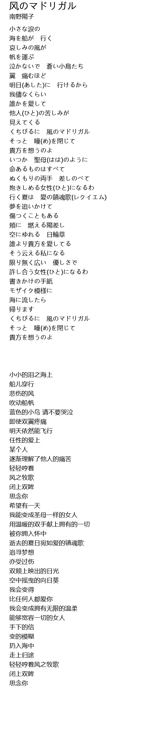 歌曲 风のマドリガル