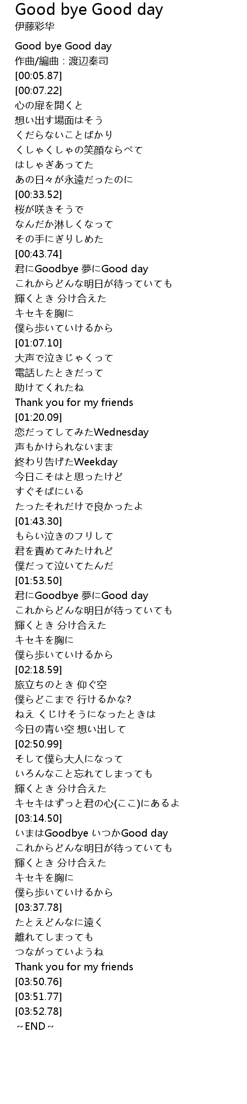 | [03:15.51] | いまはGoodbye いつかGood day |