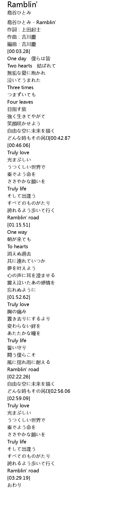 | [00:00.00] | 島谷ひとみ - Ramblin' |