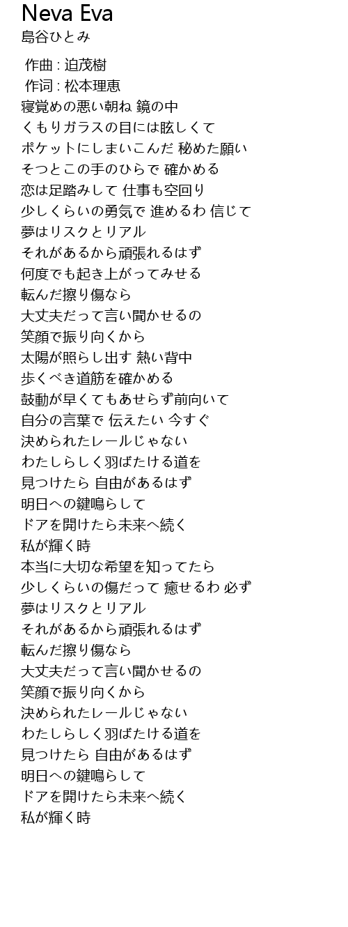 | 歌曲 | Neva Eva |