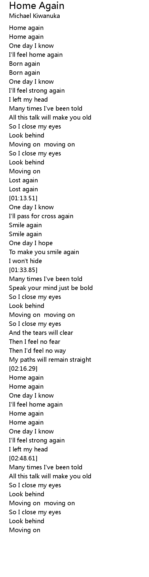 [02:35.67] Home again