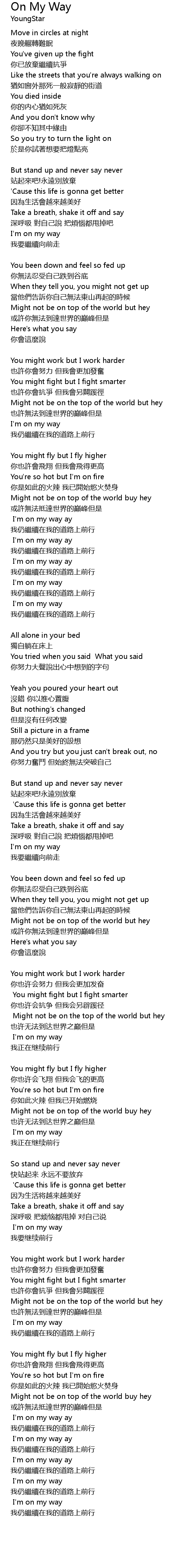 | 歌曲 | On My Way |