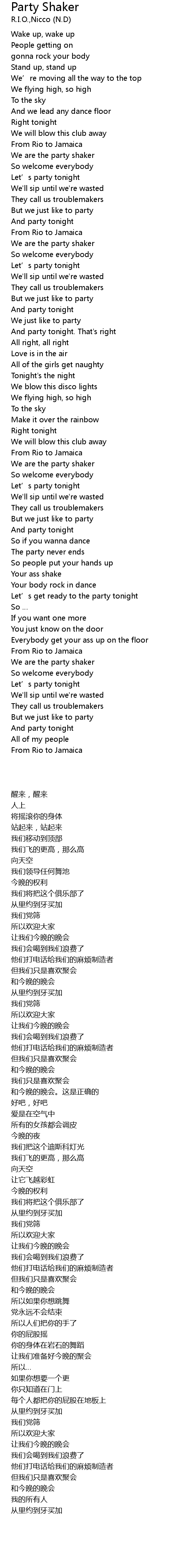 | 歌曲 | Party Shaker |