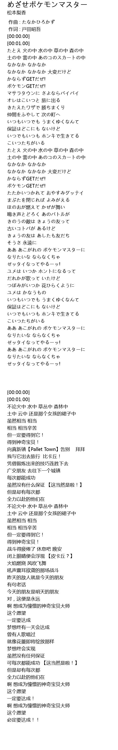 | [03:22.59] | ああ あこがれの ポケモンマスターに |