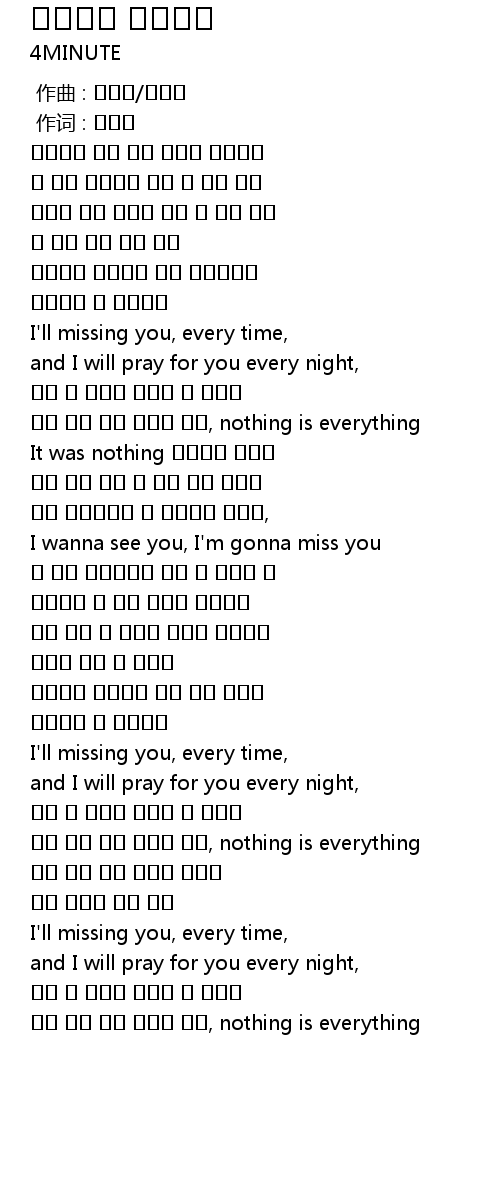 | [02:43.550] | 나도 몰래 아픈 가슴이 떨려, nothing is everything |