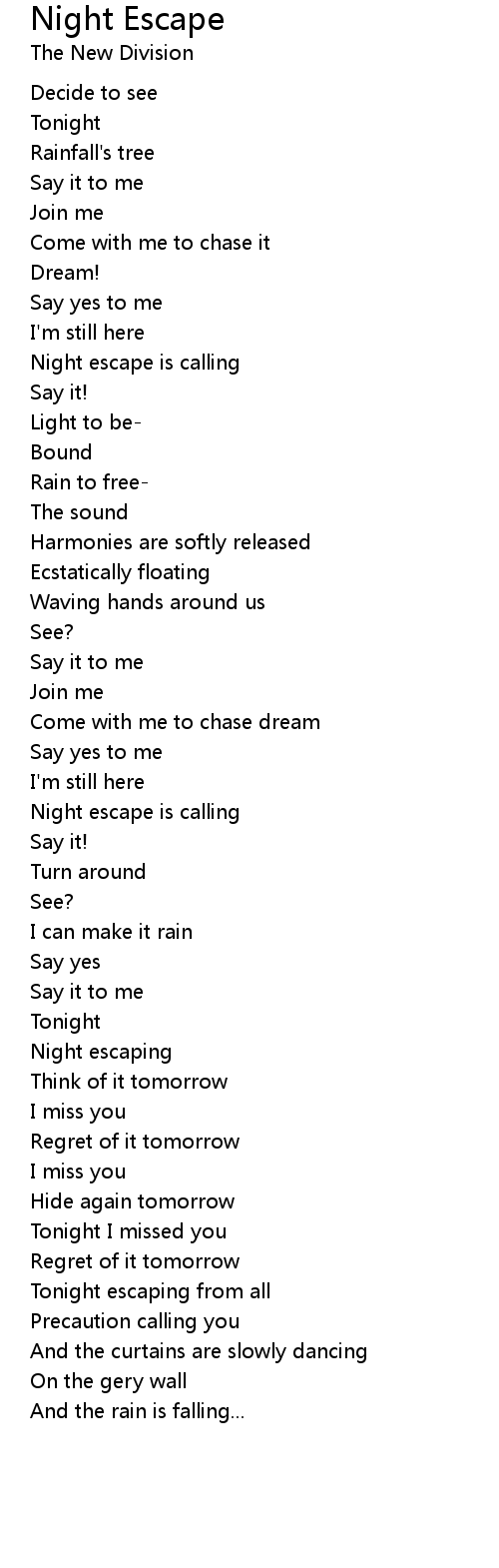 Tonight escaping from all |