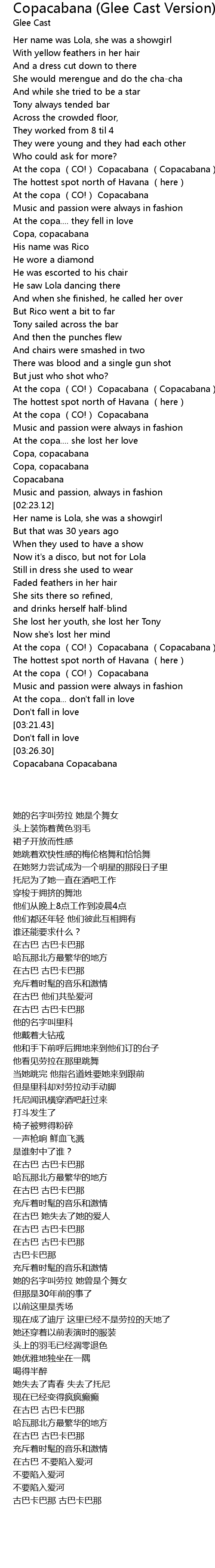| [02:55.42] | At the copa CO! Copacabana Copacabana |