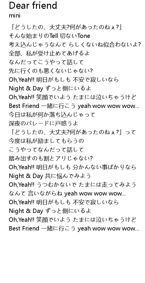 | Best Friend 一緒に行こう yeah wow wow wow... |