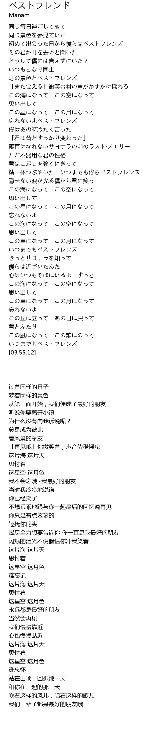 | [02:04.13] | 精一杯つぶやいた いつまでも僕らベストフレンズ |