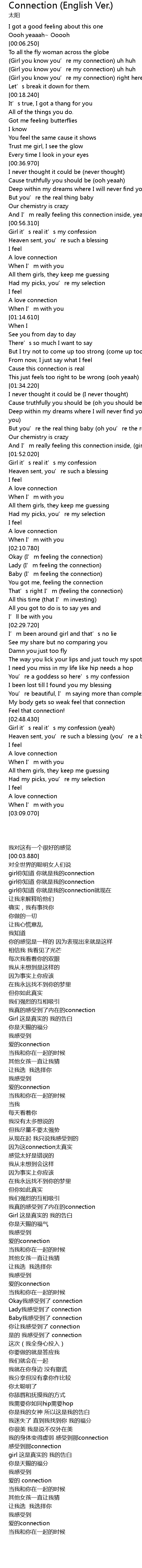 | [00:13.580] | (Girl you know you’re my connection) right here |