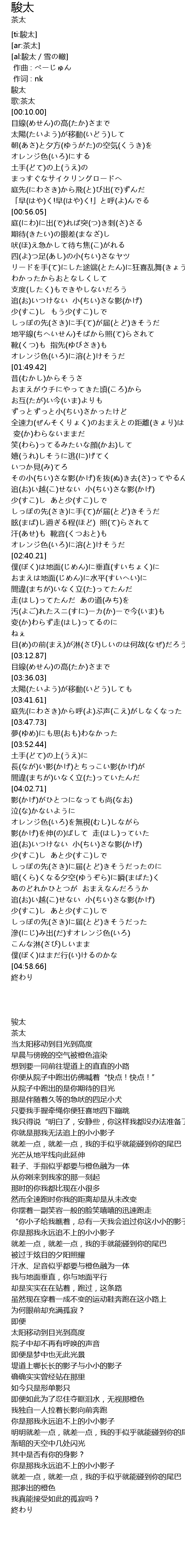 | [00:00.00] | 骏太 |