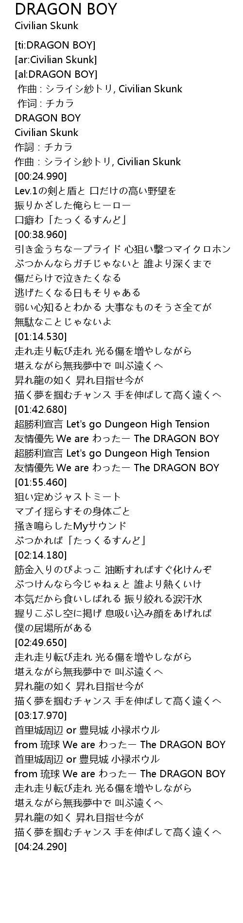 | [03:36.200] | from 琉球 We are わったー The DRAGON BOY |