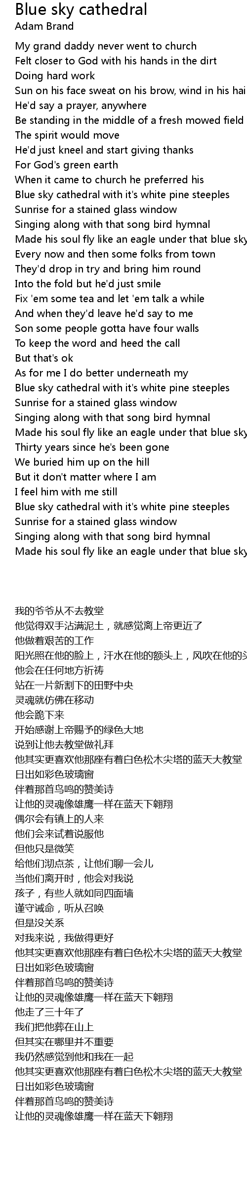 Made his soul fly like an eagle under that blue sky cathedral |