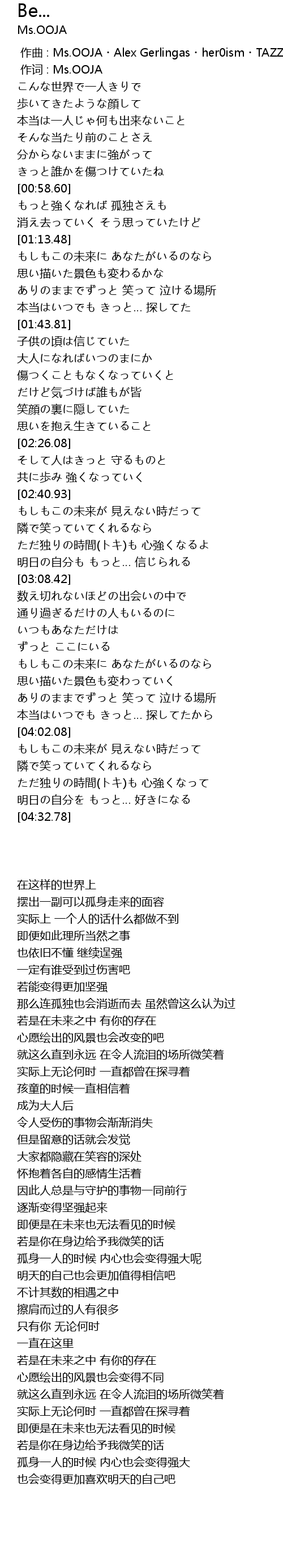 | [00:01.00] | zuò cí : Ms. OOJA |