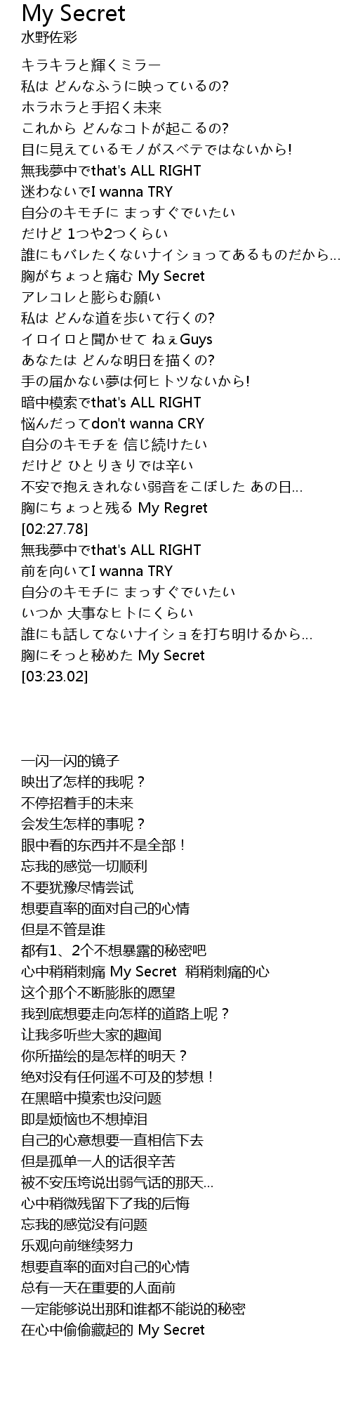 | [03:16.24] | 胸にそっと秘めた My Secret |