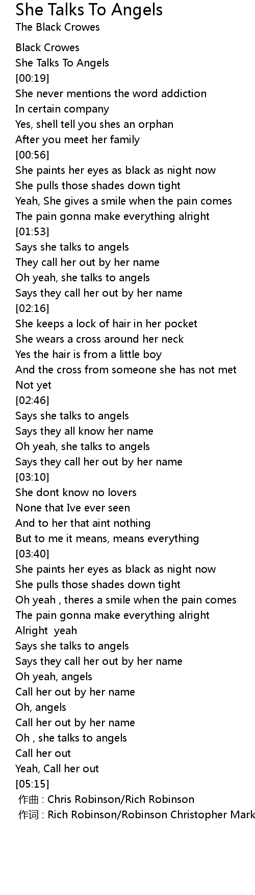 | 歌曲 | She Talks To Angels |