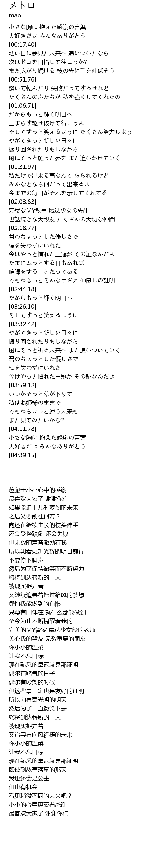 | [04:31.57] | 大好きだよ みんなありがとう |
