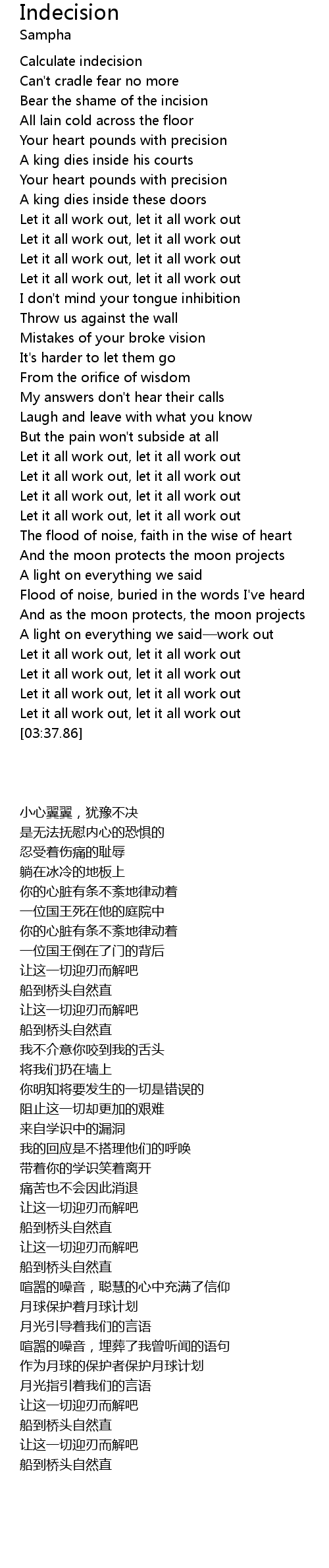 | [03:22.38] | Let it all work out, let it all work out |