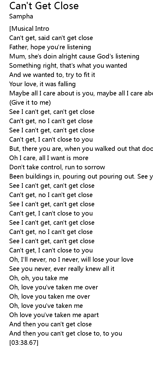 | [00:08.01] | Can't get, said can't get close |