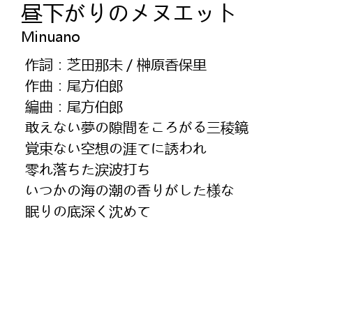 | [00:00.585] | 敢えない夢の隙間をころがる三稜鏡 |