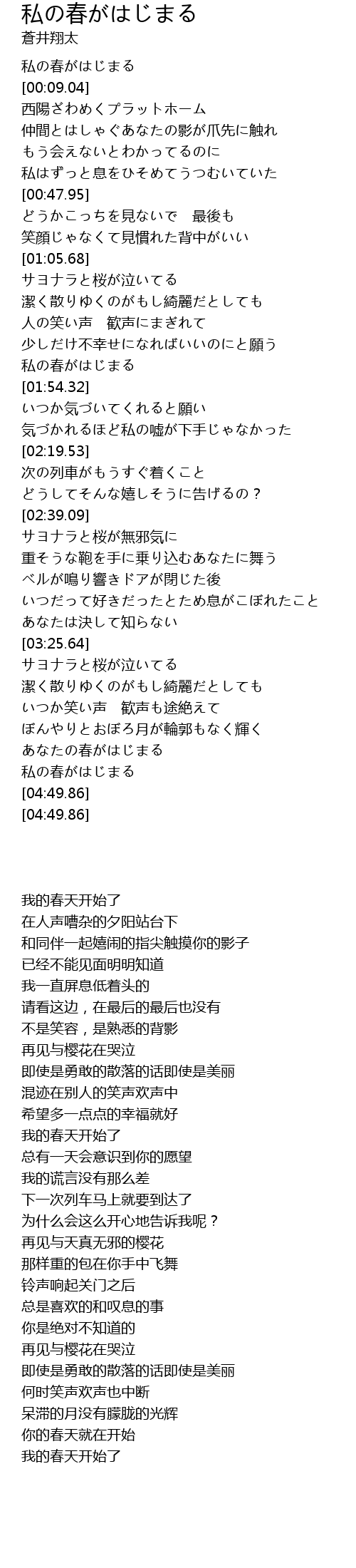 | [04:32.44] | あなたの春がはじまる |