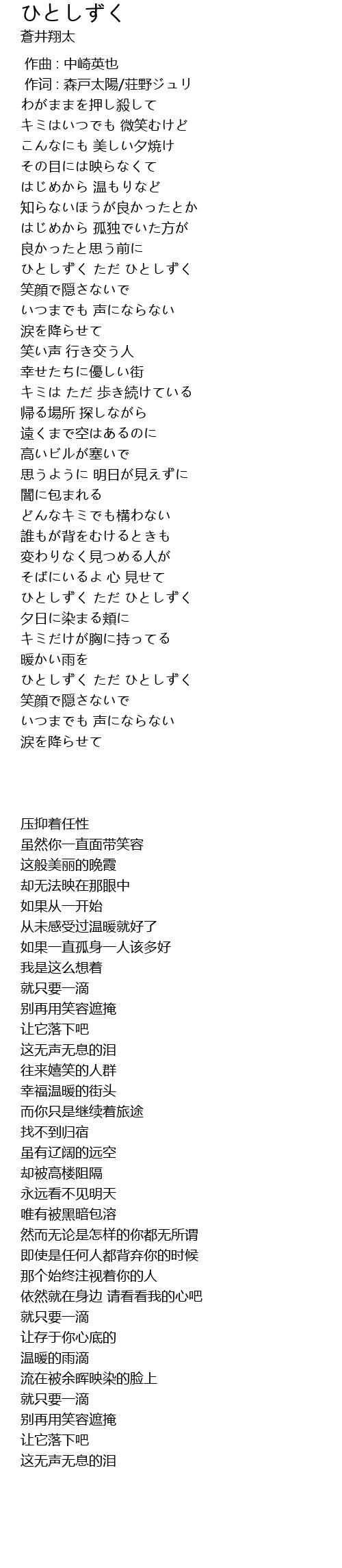 | [02:53.74] | ひとしずく ただ ひとしずく |
