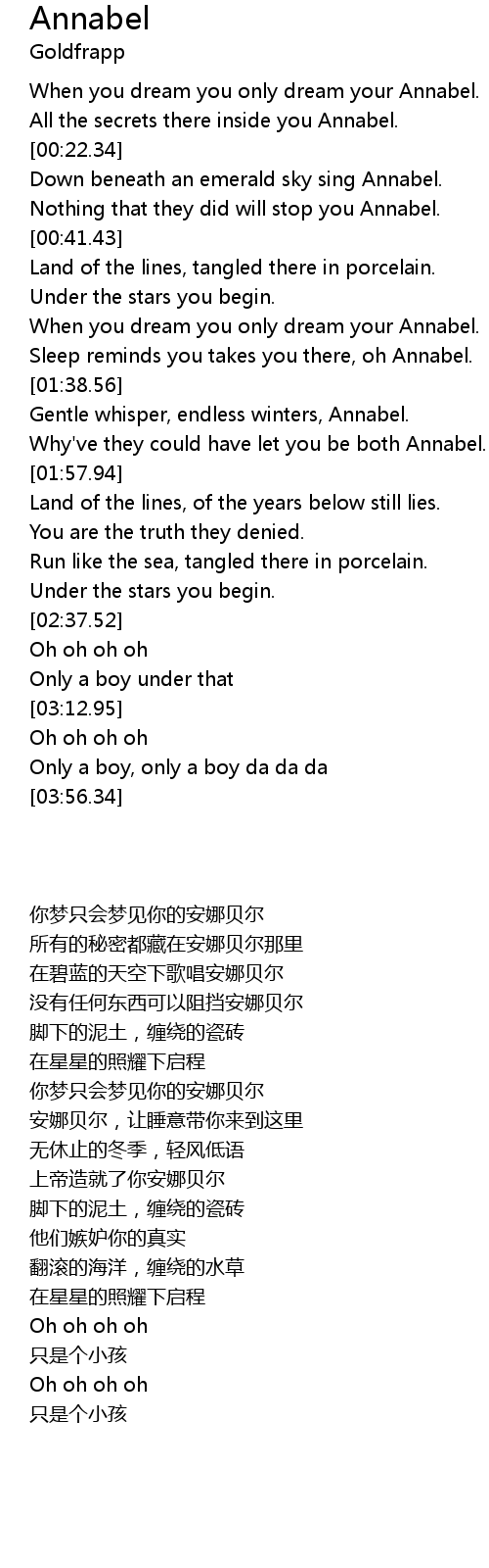 Sleep reminds you takes you there, oh Annabel. |