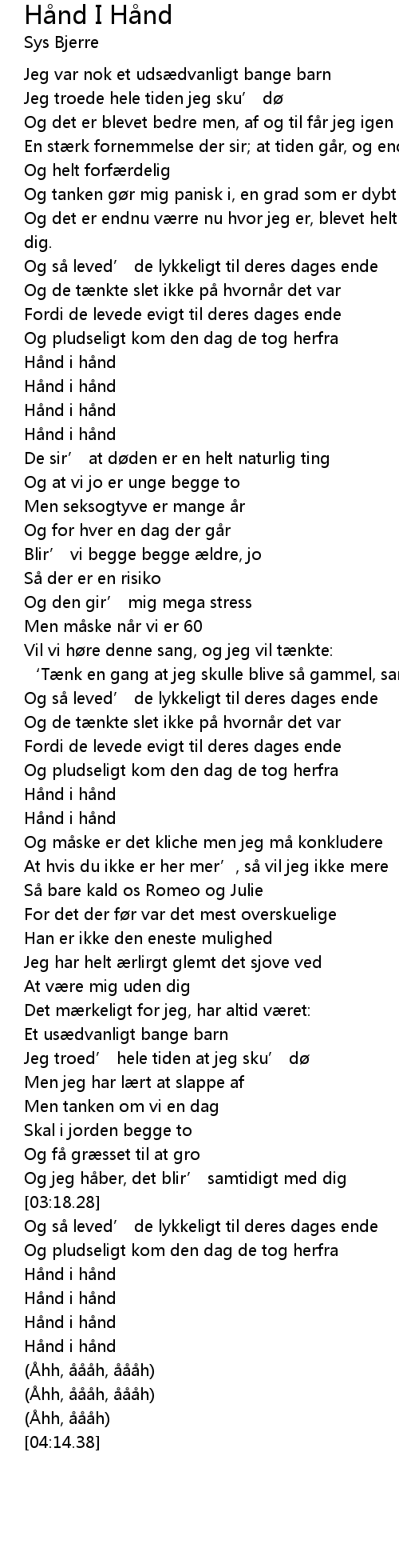 | [03:31.54] | Og så leved’ de lykkeligt til deres dages ende |