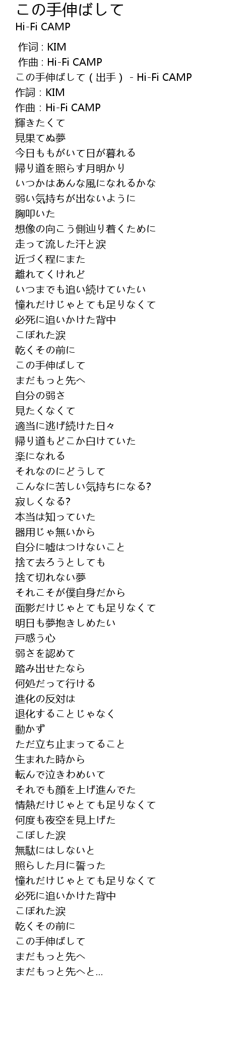 | [00:00.00] | この手伸ばして(出手) - Hi-Fi CAMP |