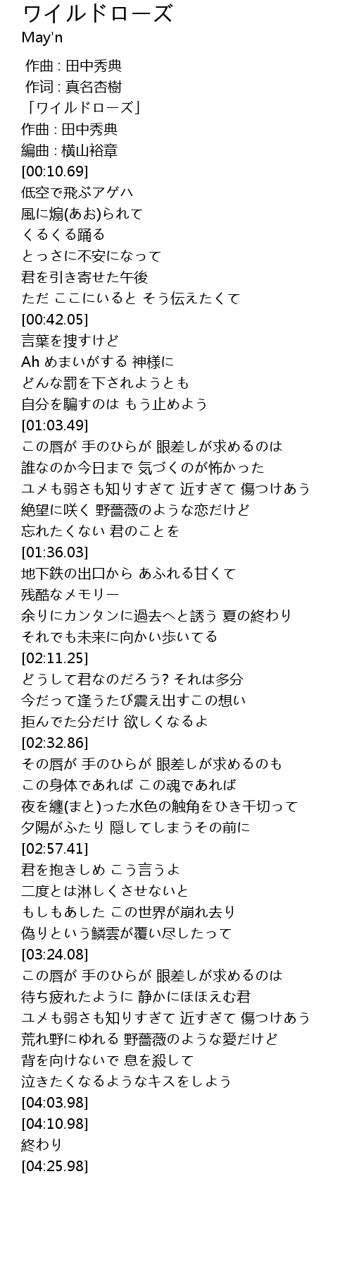 | [00:00.69] | 「ワイルドローズ」 |