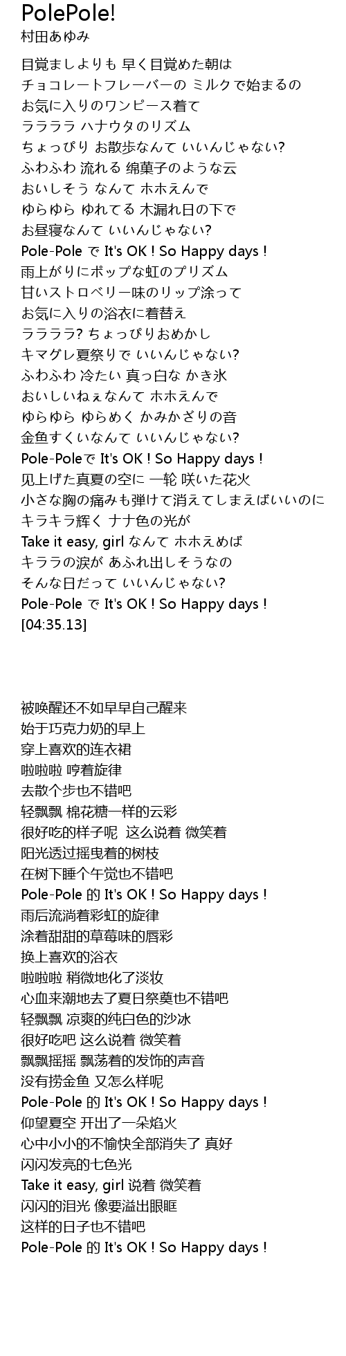 | [04:29.02] | PolePole It' s OK ! So Happy days ! |