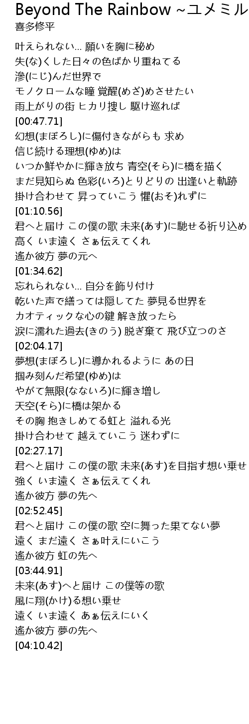 | [03:39.37] | 遙か彼方 虹の先へ |
