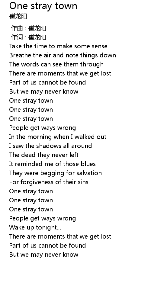 | [02:22.57] | One stray town |