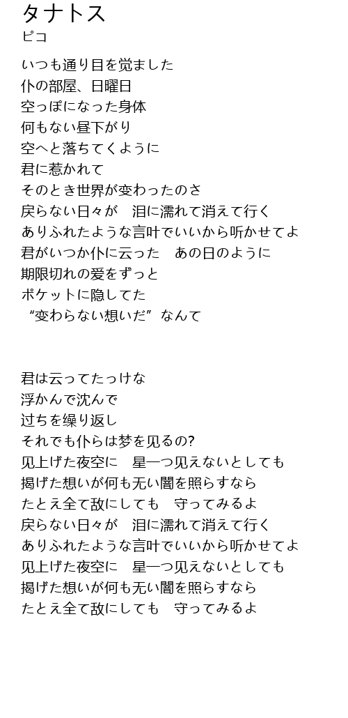 | 戻らない日々が 泪に濡れて消えて行く | |