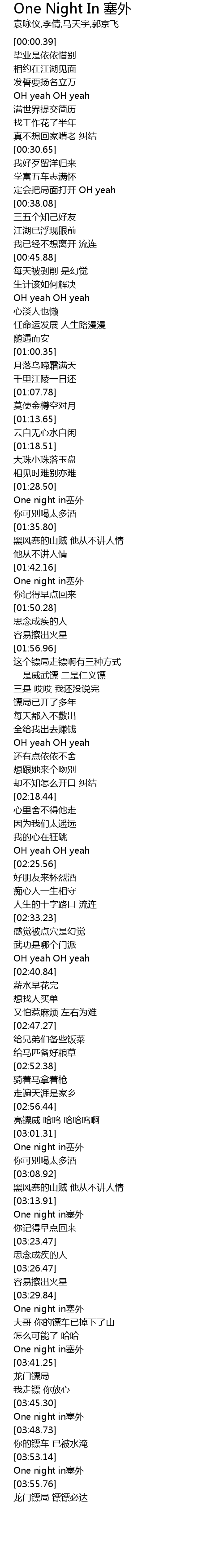 | [03:39.07] | One night in塞外 |