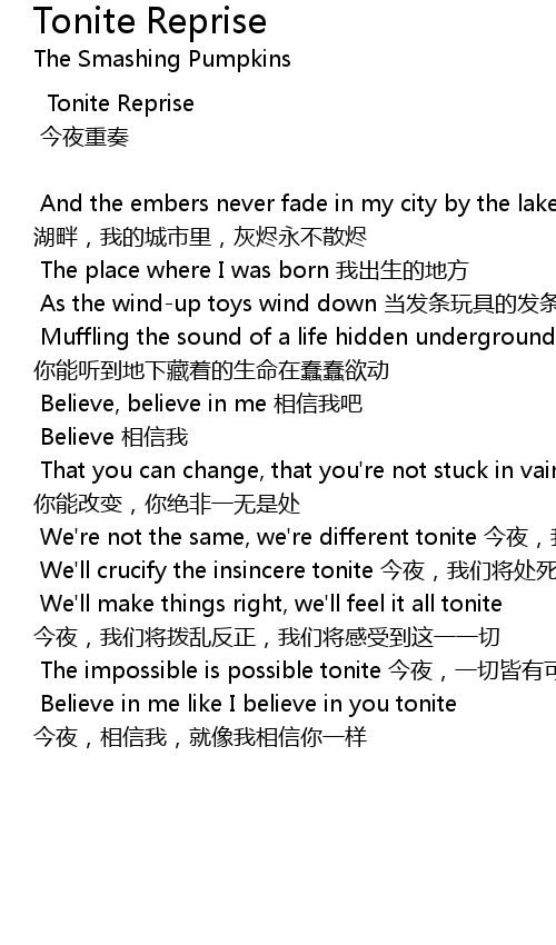 | We'll make things right, we'll feel it all tonite 今夜,我们将拨乱反正,我们将感受到这一一切 | |