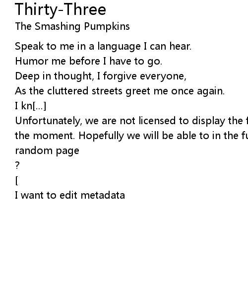 | Unfortunately, we are not licensed to display the full lyrics for this song at the moment. Hopefully we will be able to in the future. Until then, how about a | |