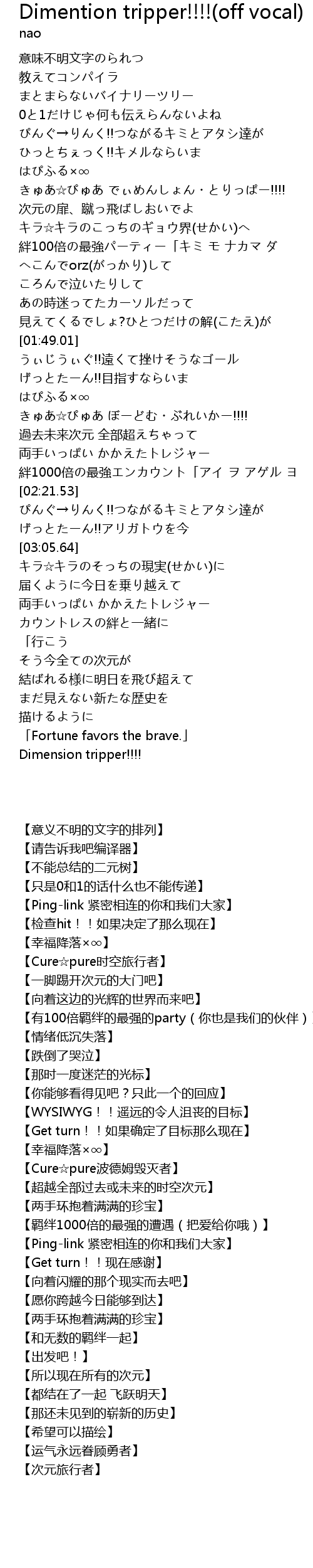 | [00:59.92] | きゅあ☆ぴゅあ でぃめんしょん・とりっぱー!!!! |