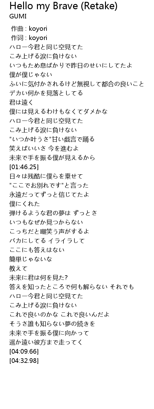 | 歌曲 | Hello my Brave (Retake) |