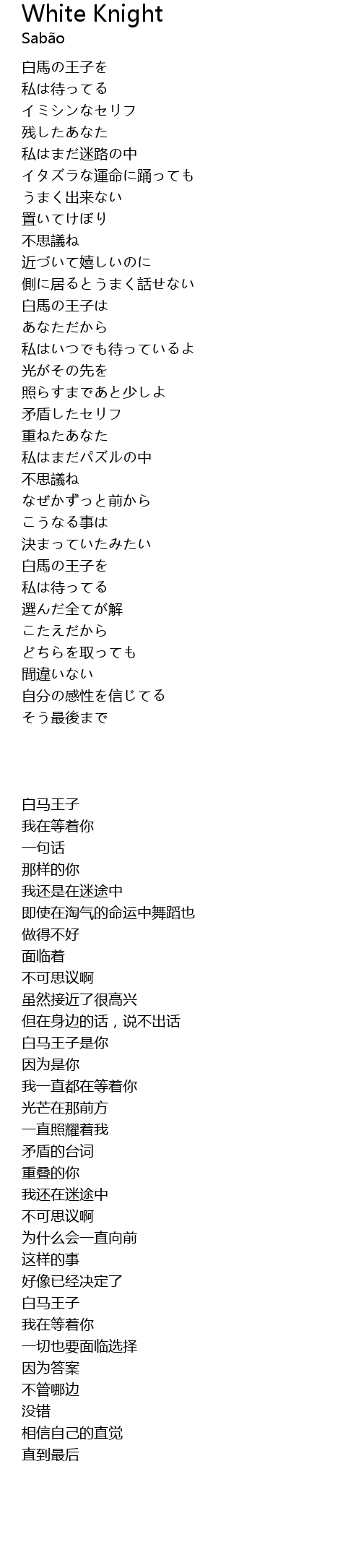 | 歌曲 | White Knight |