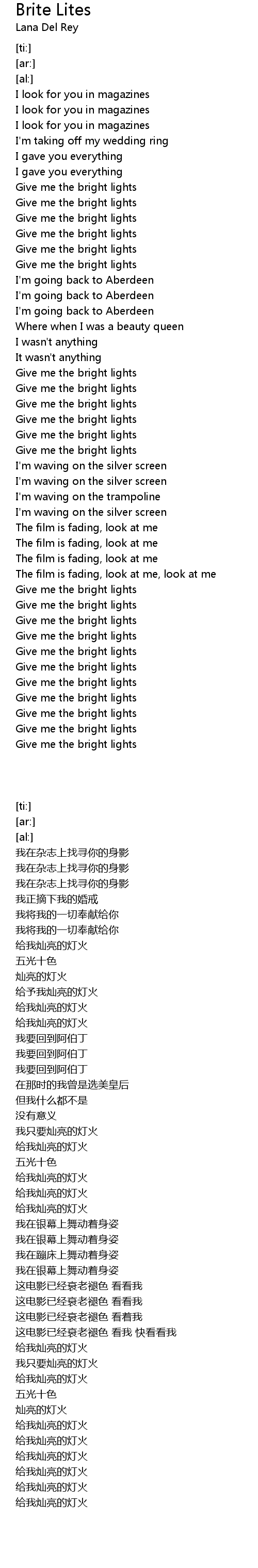 Give me the bright lights |